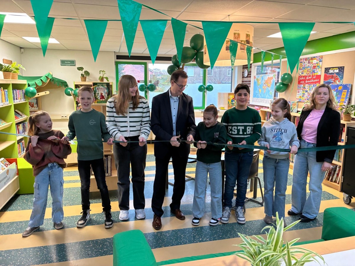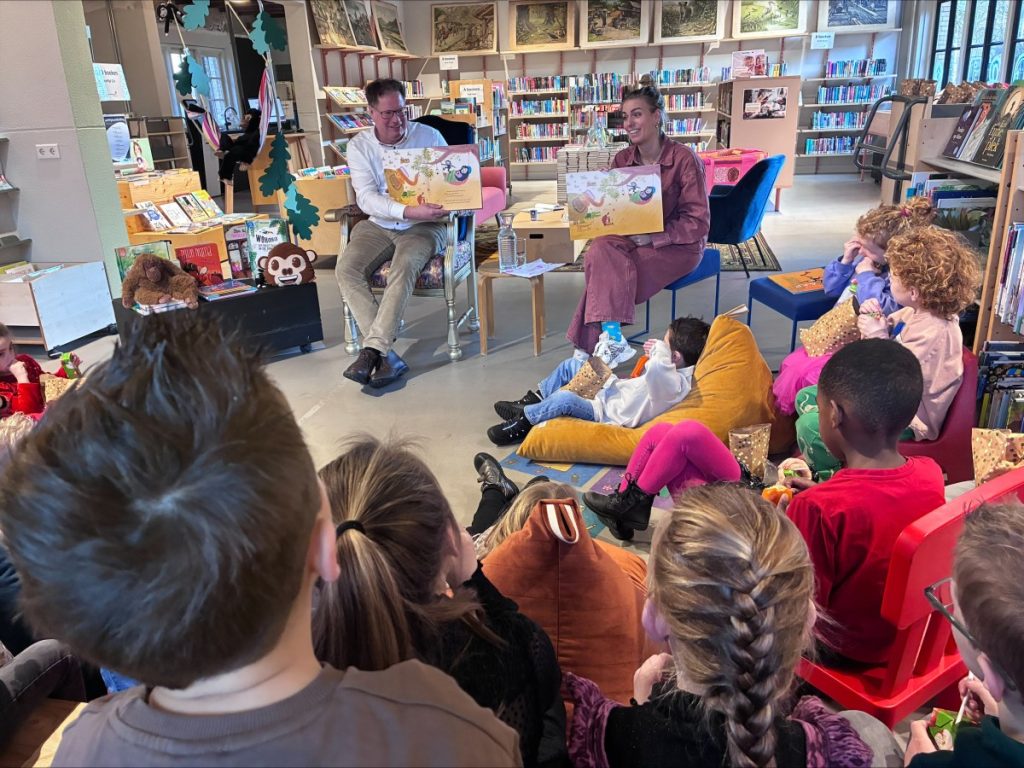 …een kleine aap met een heel leuk nieuwtje dat ze dolgraag aan iedereen wil vertellen. Bij de aftrap van de Nationale Voorleesdagen kwam het verhaal van dit aapje tot leven in Haaksbergen. Op twee plekken werd woensdagochtend voorgelezen uit het prentenboek Kleine Aap van Mies van Hout. In de bibliotheek luisterden kleuters van De Kameleon aandachtig naar locoburgemeester Jan-Herman Scholten, terwijl ze genoten van een gezellig ontbijtje. Op basisschool Bonifatius las wethouder Pieter van Zwanenburg hetzelfde verhaal voor. Daar werd ook feestelijk ‘De Bibliotheek op school’ geopend. Heel officieel, met het doorknippen van een lintje.