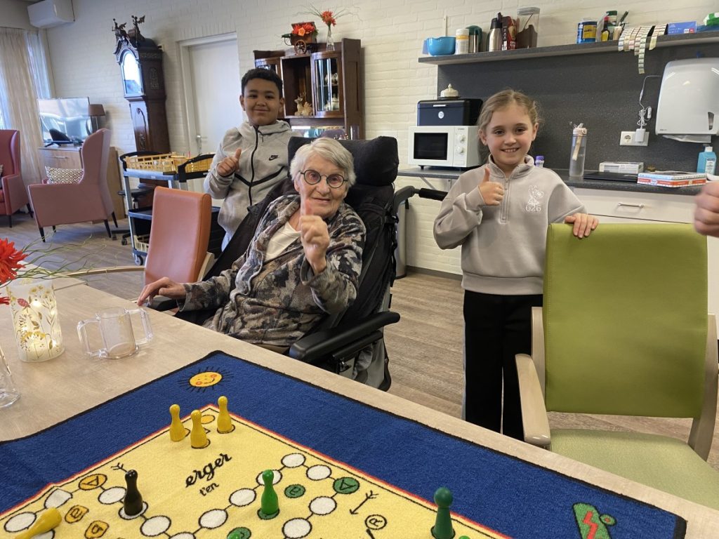 Jong ontmoet oud om spelletjes te spelen