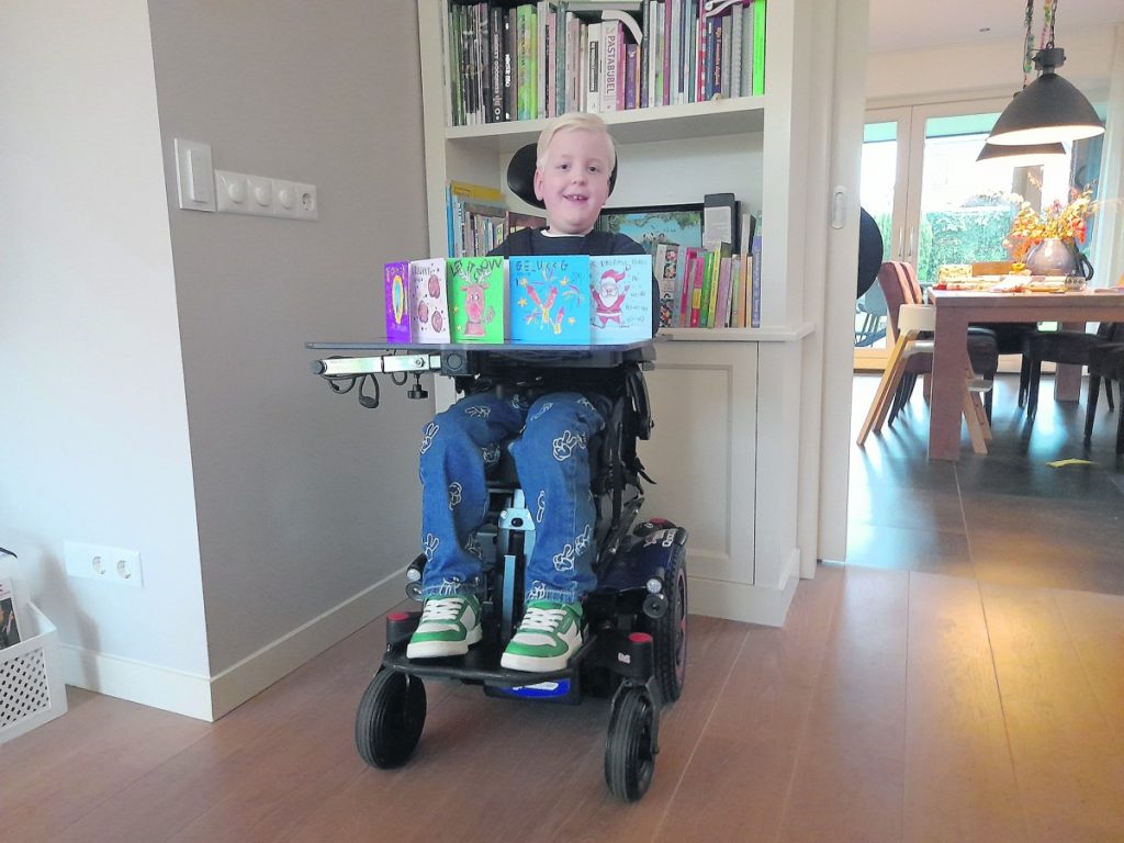HAAKSBERGEN – Mees Rupert (7) wil de komende weken zoveel mogelijk kerstkaarten verkopen. Dat doet hij voor een goed doel. De opbrengst wordt eind dit jaar overhandigd bij de landelijke actie 3FM Serious Request in Den Bosch. 3FM Serious Request staat dit jaar in het teken van Spieren voor Spieren. Mees heeft zelf een spierziekte en hoopt dat er heel veel geld binnenkomt. De missie van Spieren voor Spieren is om spierziekten bij kinderen te verslaan. Mees heeft de spierziekte SMA en zit in een elektrische rolstoel. “Ik houd van lezen en knutselen en heb vijf kerstkaarten gemaakt. Die kunnen in setjes worden gekocht voor twaalf euro. Ik wil er zoveel mogelijk verkopen. Vijfhonderd setjes zou heel mooi zijn”, zegt Mees, die deze week herfstvakantie heeft. Mees zit in groep 4 van basisschool Los Hoes. “Ik ga graag naar school, maar vakantie vind ik toch leuker”, zegt hij.
