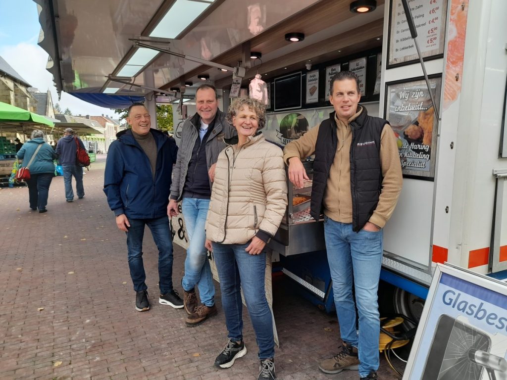 HAAKSBERGEN – Marinus Kroezen, Benno Nobbenhuis, Monique Barink en Peter Reudink zijn er klaar voor. Zij verwachten woensdag 22 oktober een hoop gezelligheid op de weekmarkt in Haaksbergen. De Dag van de Markt staat weer op het programma. “Dit jaar is er een vernieuwd programma met meer kinderactiviteiten”, zegt Monique Barink namens de organisatie van de markt in Haaksbergen. De Dag van de Markt is intussen een begrip geworden. Het is alweer acht jaar geleden dat een aantal enthousiaste marktkoopmensen de koppen bij elkaar staken om in de herfstvakantie een gezellige marktdag te houden. Het idee sloeg aan. “We zien op de Dag van de Markt meer bezoekers en ze komen ook weer terug op de andere marktdagen”, zegt Barink. Ook uit de omliggende dorpen weten mensen de weg naar het dorpshart van Haaksbergen te vinden. Woensdag 22 oktober is er weer van alles te zien en te beleven op de Dag van de Markt. Het is dan immers herfstvakantie. De organisatie heeft het voor de komende editie echter iets over een andere boeg gegooid. Er is meer kindervermaak. Er staat onder meer een kermisattractie waar kinderen als een piloot in een vliegtuigje kunnen stappen. Ook kunnen ze aan de slag gaan met graffiti. Een ballonkunstenaar is er ook. Hij maakt allerlei figuren van ballonnen. “Ook komt er een clown, die in een botsautootje over de markt rijdt”, zegt Benno Nobbenhuis. De bezoekers moeten ook niet vreemd opkijken als ze een groep ganzen voorbij zien waggelen tussen de marktkramen. Een ganzenparade ontbreekt evenmin. Aan vermaak is dus geen gebrek. Daarnaast is er een rad van fortuin, dat acht keer gaat draaien. “Bij alle acht rondes zijn er mooie prijzen te winnen. Veel foodproducts zoals kaas, vis, eieren, brood en worst. Bovendien is er bij alle acht rondes een hoofdprijs”, zo laten Kroezen, Nobbenhuis, Barink en Reudink weten. Aan kopende klanten op de markt worden kaartjes uitgedeeld om mee te kunnen doen aan het rad van fortuin. Lang wachten hoeven ze niet. Het rad van fortuin draait elk half uur. De Dag van de Markt is van 8.00 tot 13.00 uur. De vroege vogels zijn spekkoper woensdag. Zij profiteren van extra kortingen. “Van 8.00 tot 9.00 uur is er een vroege vogelactie. Dan zijn er extra kortingen bij de kramen”, zegt Reudink.