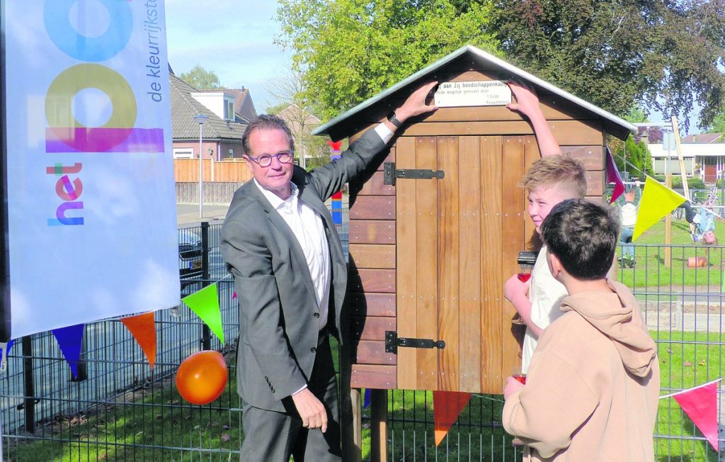 HAAKSBERGEN – Goed nieuws voor de mensen in Haaksbergen, die moeilijk de eindjes aan elkaar kunnen knopen. Er is sinds kort een boodschappenkast bij de nieuwbouwschool Het Palet aan de Adriaen Brouwerstraat. De opening was vrijdagochtend. Die werd verricht door enkele schoolkinderen samen met wethouder Pieter van Zwanenburg. In de boodschappenkast liggen al tal van houdbare producten zoals kidneybonen, kikkererwten, tomatensaus, tandpasta, chips, zonnecrème en waxinelichtjes. “Ouders van leerlingen hebben al spullen gebracht voor de boodschappenkast”, zegt directeur Miriam van der Heide van Het Palet vlak voor de opening. Het Palet adopteert de boodschappenkast. Leerlingen worden betrokken bij dit project om mensen te ondersteunen, die moeilijk rond kunnen komen. Zij zien er bijvoorbeeld op toe dat er geen producten in liggen waarvan de houdbaarheidsdatum ver is verstreken. De boodschappenkast is een initiatief van serviceclub Zij aan Zij.