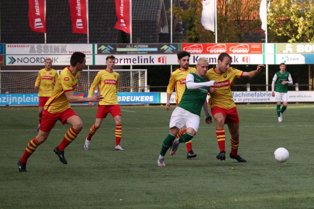 Al na twee minuten kwam Rohda Raalte op 0-1 voorsprong en voetbalde HSC’21 weer achter de feiten aan. Helaas overkomt de ploeg dat veel te vaak in het begin van de wedstrijd. Ondanks de vroege voorsprong kreeg HSC’21 in de eerste heft ook goede kansen en schoot Sam Holsink de bal nog keihard tegen onderkant lat. Maar zoals het HSC’21 dit seizoen vaak overkomt ging ook die bal er niet in.